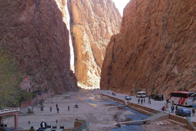 Prima colazione in hotel. Visita della valle del Dades con le sue fantastiche e colorate formazioni rocciose e i rigogliosi palmeti. Arrivo alle Gole del Todra. Visita delle impressionanti Gole, passeggiata e pranzo. Proseguimento verso il deserto.