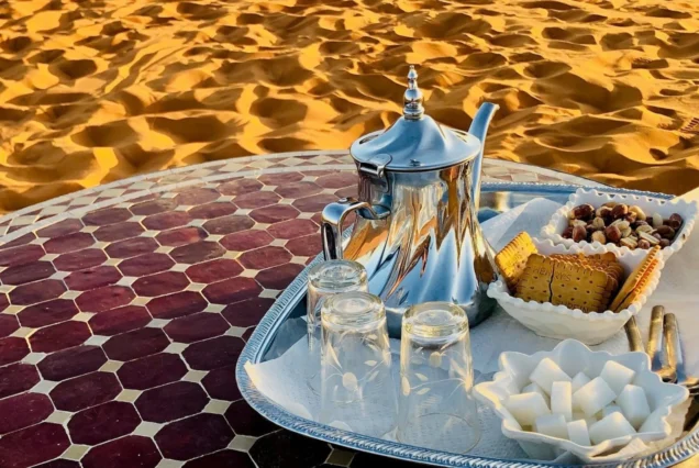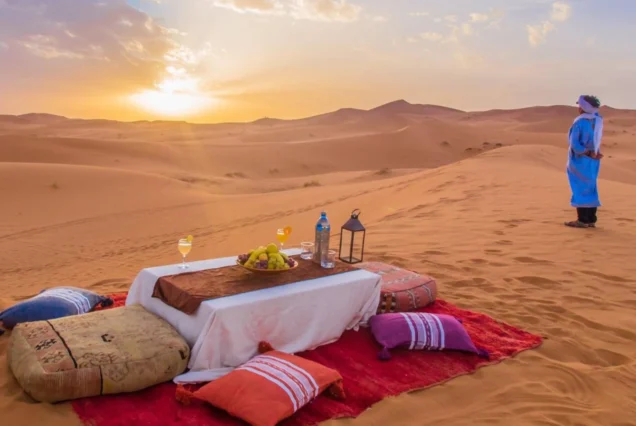 Prima colazione in hotel. Partenza per Zagora. Lungo il percorso, visita della kasbah di Tamnougalt, di Tamegroute (biblioteca coranica e kasbah sotterranea) e di Tagounite. Proseguimento per M’hamid, pista per il deserto di Erg Chigaga. Cena e pernottamento in una tradizionale tenda berbera.