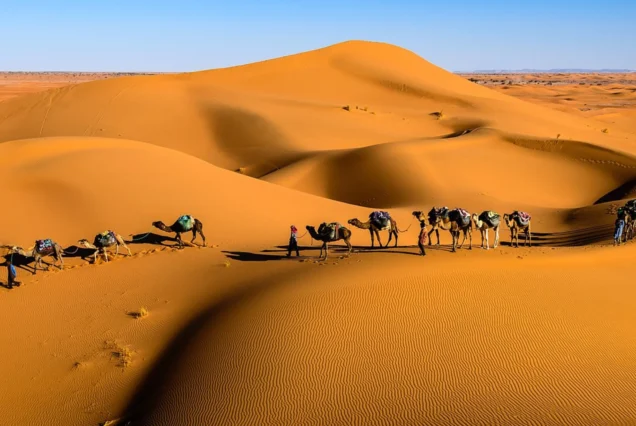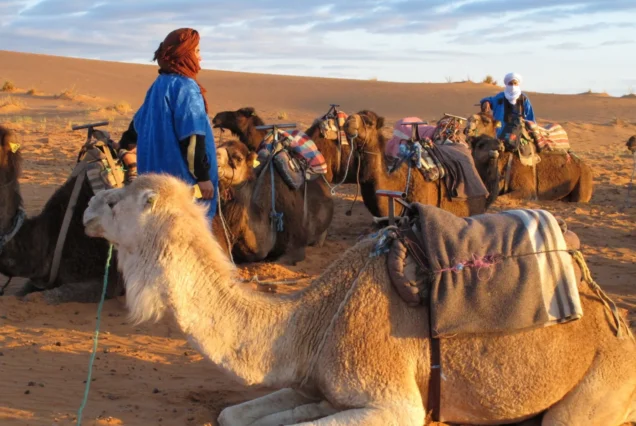 Dopo la colazione, partiremo per la Valle del Draa, attraverso la quale scorre uno dei fiumi più lunghi del Marocco. Faremo diverse soste per ammirare le bellissime kasbah e i villaggi berberi lungo il percorso e le vere meraviglie del fiume Draa. Dopo il pranzo ad Alnif, in circa due ore raggiungeremo le spettacolari dune di Merzouga, dove prenderemo un tè e godremo dell’ospitalità di una breve pausa.